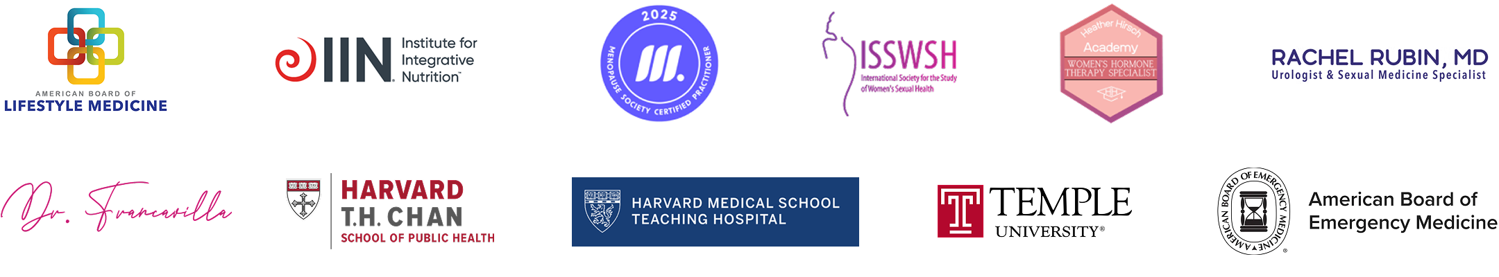 Certified and specialized in all the things that really matter at midlife: Menopause medicine, weight management, lifestyle medicine, sexual health, and decades of experience coordinating health teams.